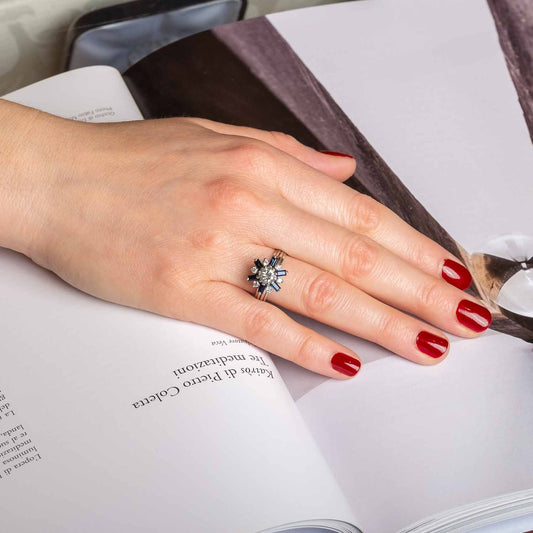 Vintage star ring with diamonds and sapphires