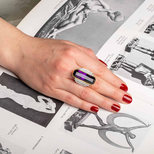 Vintage Cocktail ring with amethyst and diamonds