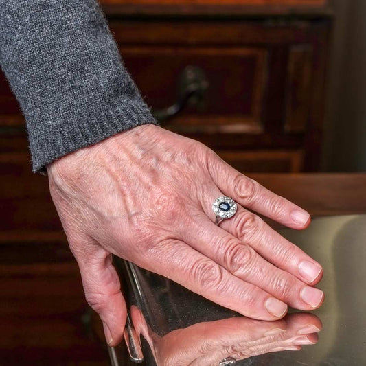 Art Deco Ring with Oval Sapphire & Diamonds