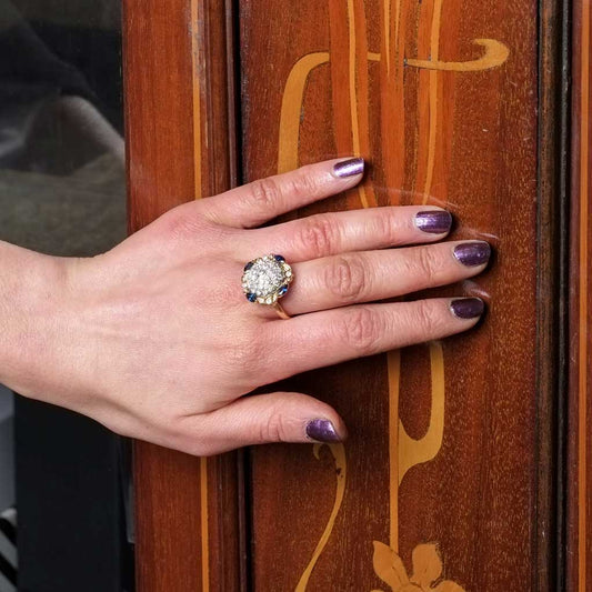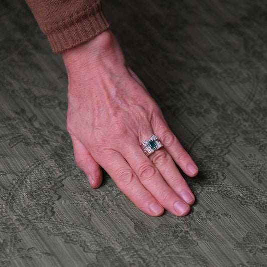 Geometric Cocktail Ring with Emeralds & Diamonds