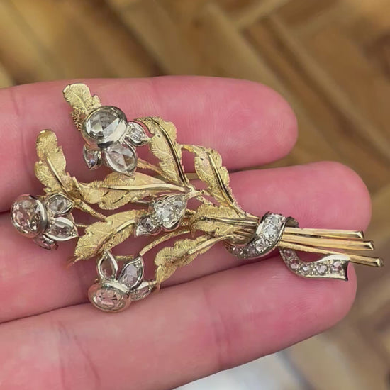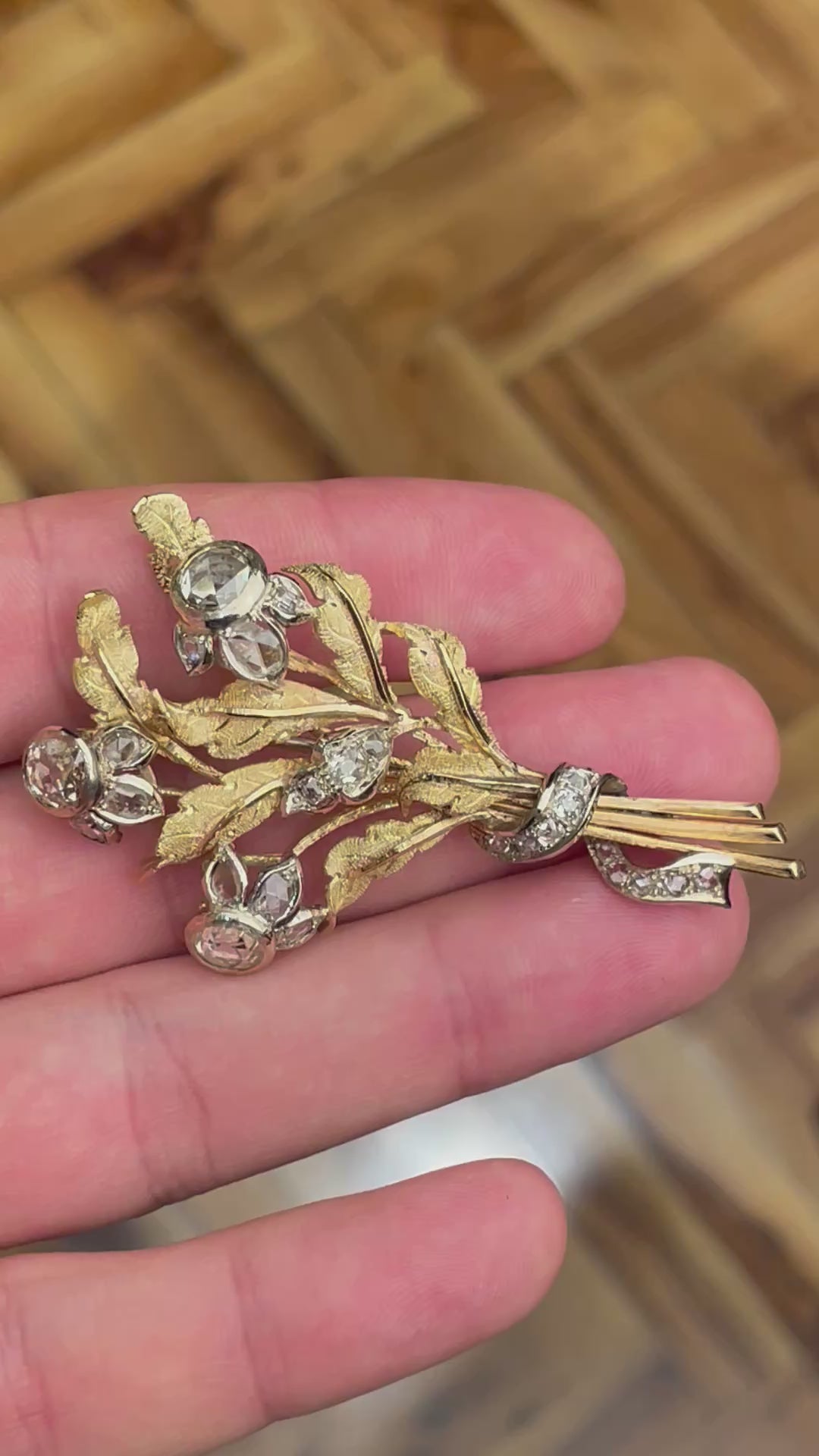 1960s Floral Bouquet Brooch in 18ct Gold with Rose-Cut and Old-Cut Diamonds