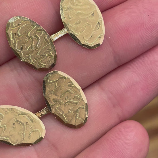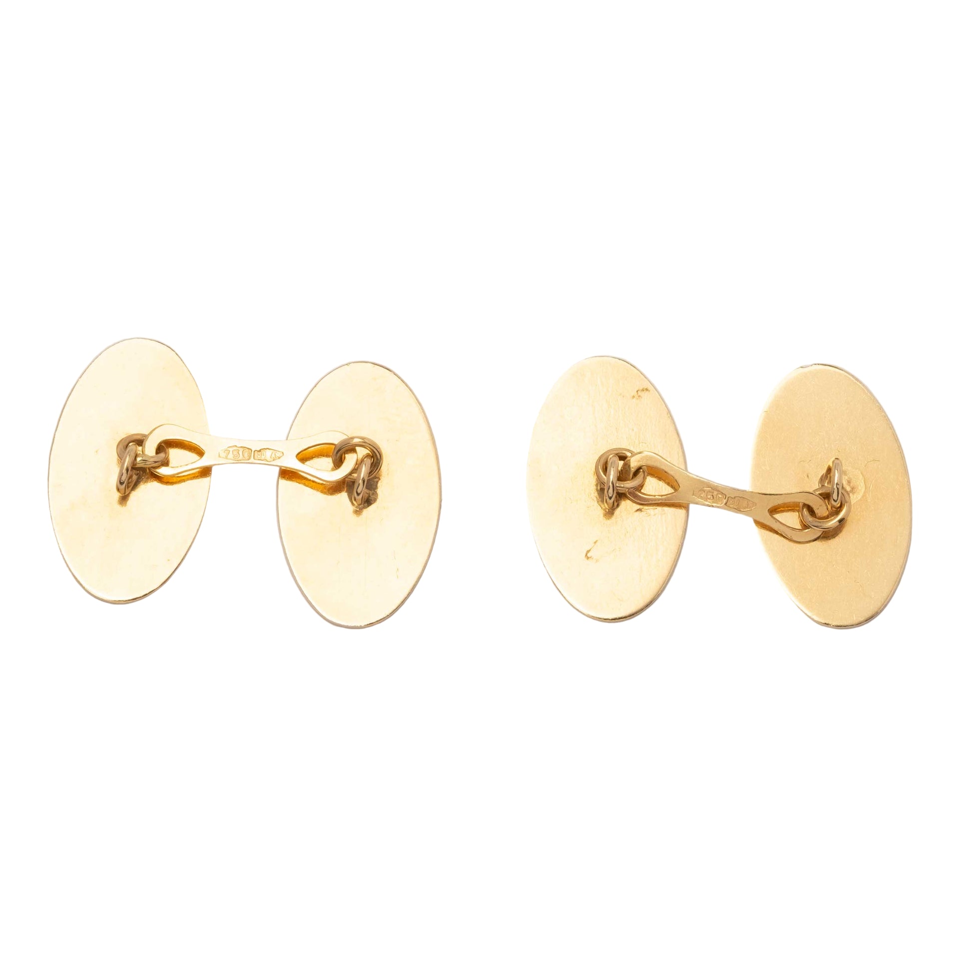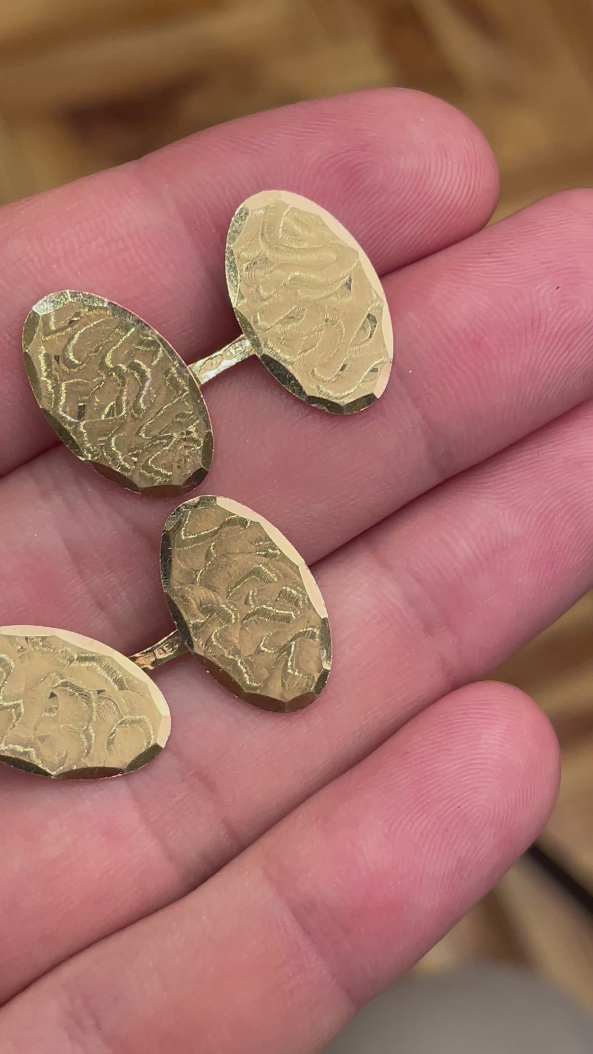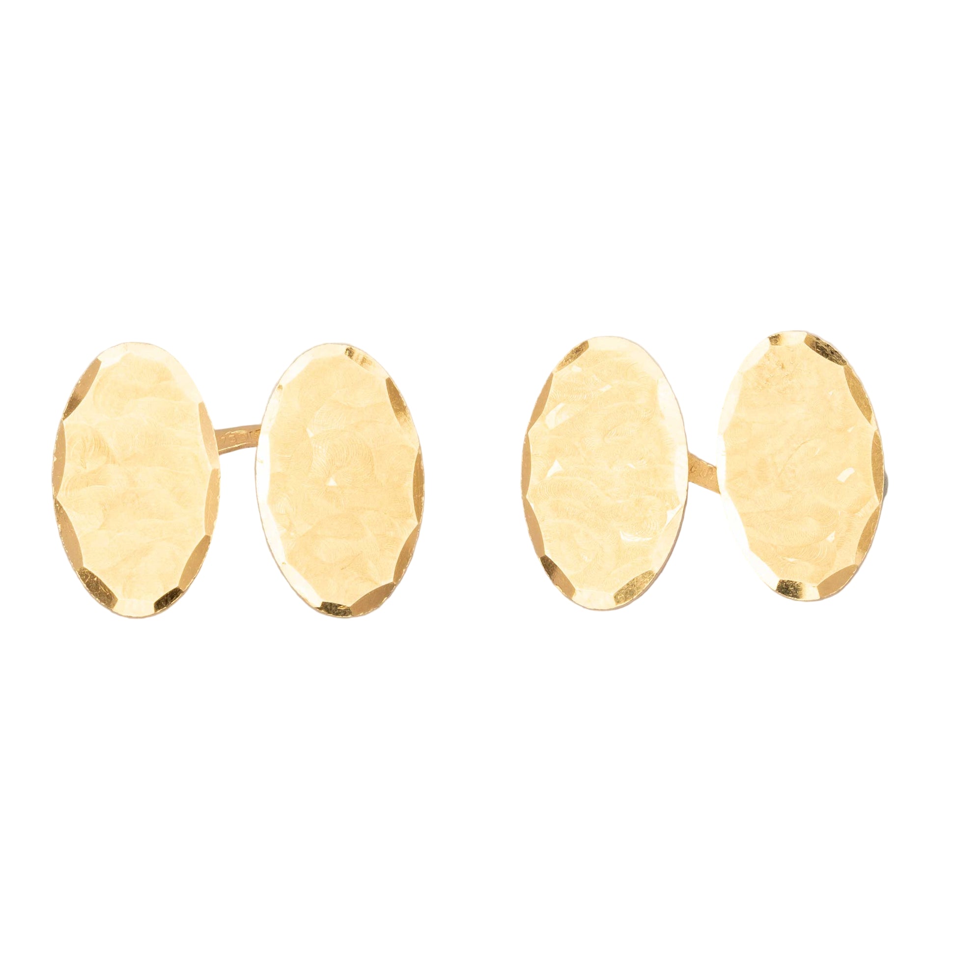 Elegant oval cufflinks crafted in 18ct gold, dating back to the 1960s, featuring a refined satin finish that enhances their discreet and sophisticated charm. A timeless vintage accessory, perfect for elevating formal attire with subtle elegance.