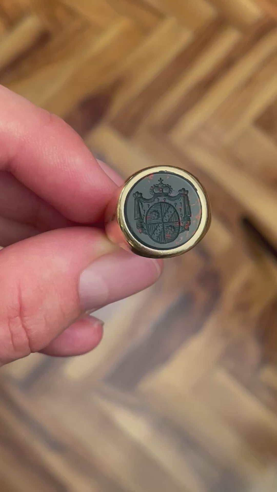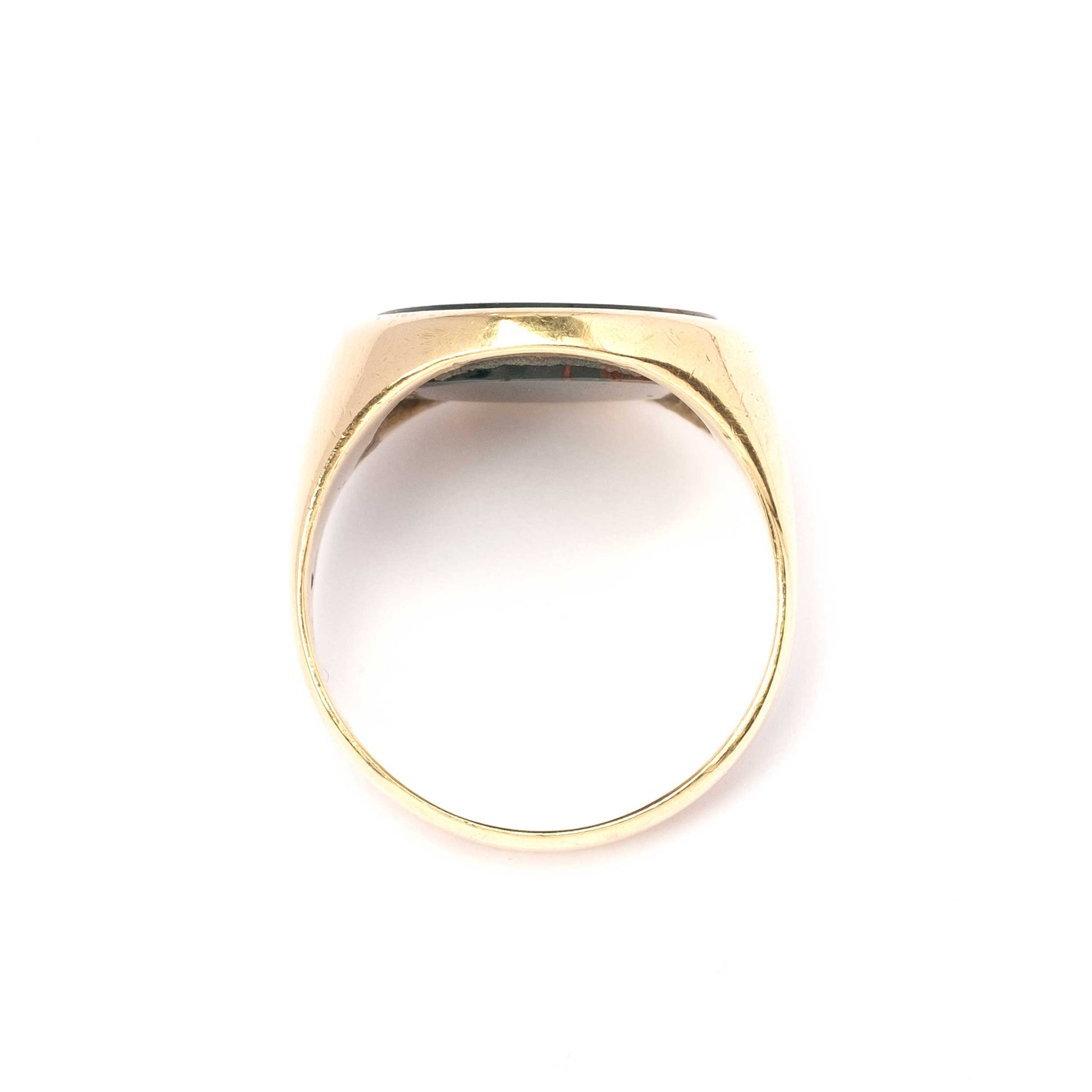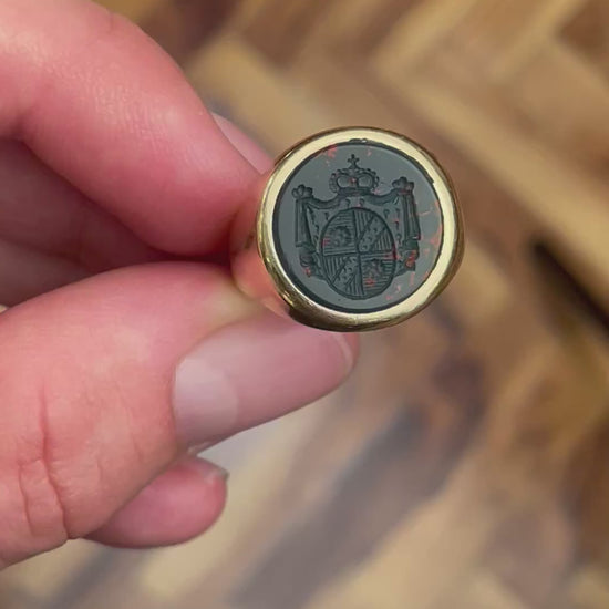Anello Sigillo Antico in Oro 9ct con Diaspro Sanguigno Inciso a Mano